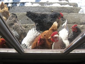 I did not think when we started chickens five years ago that they would be so entertaining nor become such a part of our family. Their personalities are undeniable. They have been the inspiration for much creativity from holiday cards, painting, home movies(we had one rooster named marble who crowed on command), and even my son has begun writing a cartoon series about them in the style of Spy vs. Spy. He calls it Chicken Vs. Chicken in which two enemy chickens are continually planting bombs in one another’s nests, eggs, etc. Not to mention that free range, organically raised fresh eggs from the back yard are not to be beat!