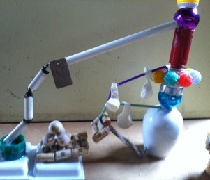 Assemblage art at Hayloft. What a free for all and a blast! The studio looked as if it had been ransacked by the end of each day. This was a total stream of conscious, try it and see what happens, go for it, that might be cool, kind of class. When allowed to have at it, the students were remarkably clever and unencumbered. Deep inner creativity was unlocked and flowing. Fun!