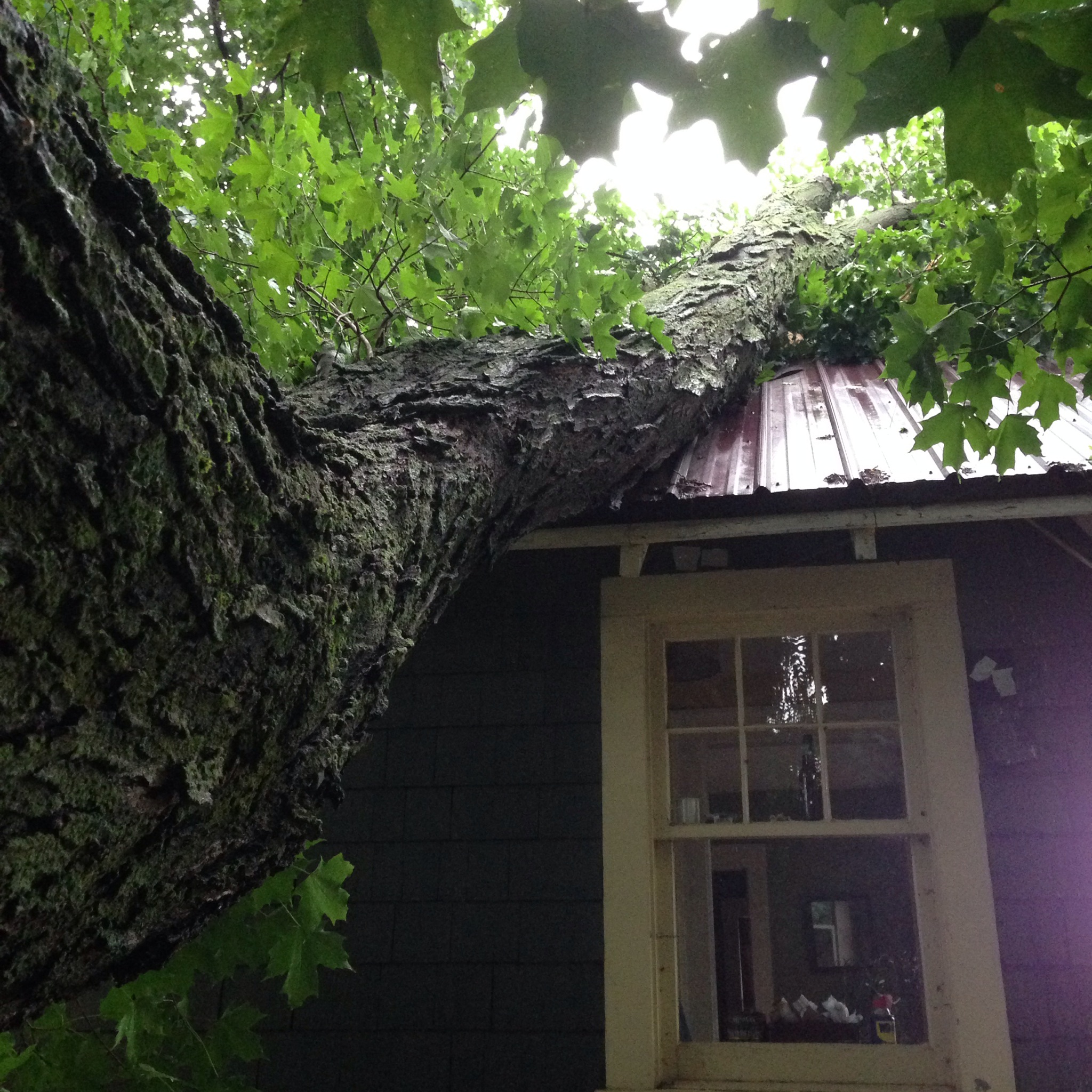 This summer at the hayloft started with a crack! And then a tree fell on our house. Well, okay, it was just a limb but that limb was as big as a tree.