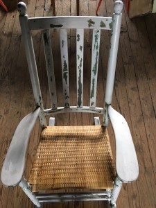 There is always a story behind the chairs I work on. This rocker has been sitting on the porch of the customers family house broken and decaying for years. One family member has bought a little cottage on the cape and the rest of the family is pitching in to have the rocker repaired as a house warming gift. I’d like to sit in this rocker with a cup of tea and watch the tides come and go. Jealous.